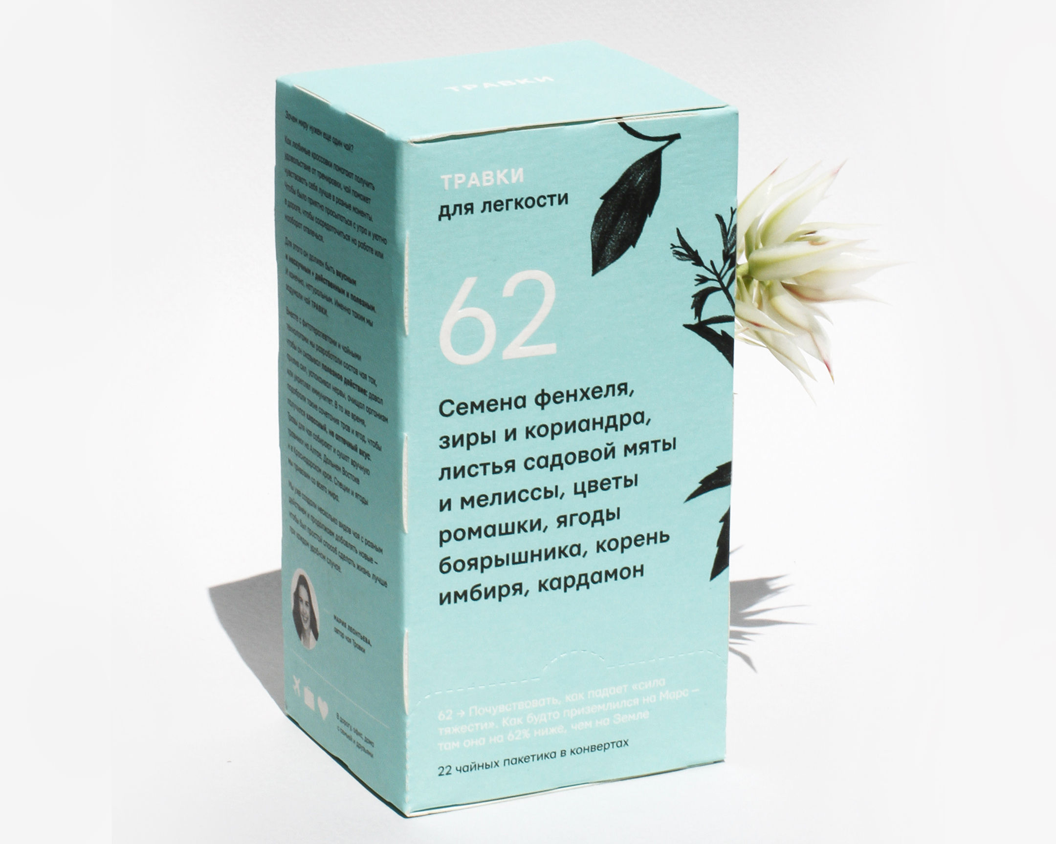 Масса нетто: 38,5 г. (22 чайных пакетика в индивидуальных конвертах по 1,75 г.)